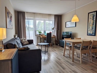 Schlafsofa,einer voll ausgestatteten Küchenzeile und einem Essplatz,